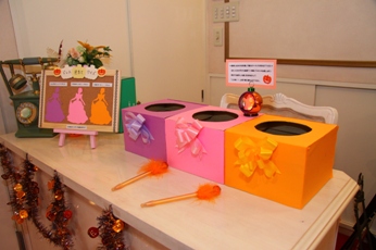 ドレスの色当てクイズの投票所にもハロウィンの飾りつけやシンデレラのモチーフを加えました