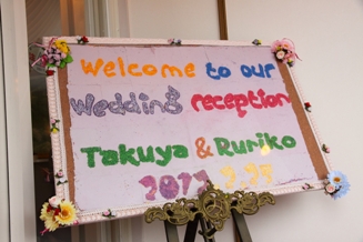 当日のウエルカムボードやペーパーアイテムなども地元の子供たちが製作を手伝ってくれたりして、その風景もお写真で振り返るコーナーなども設け、披露宴までのお時間も退屈することなく過ごせるようになっておりました。